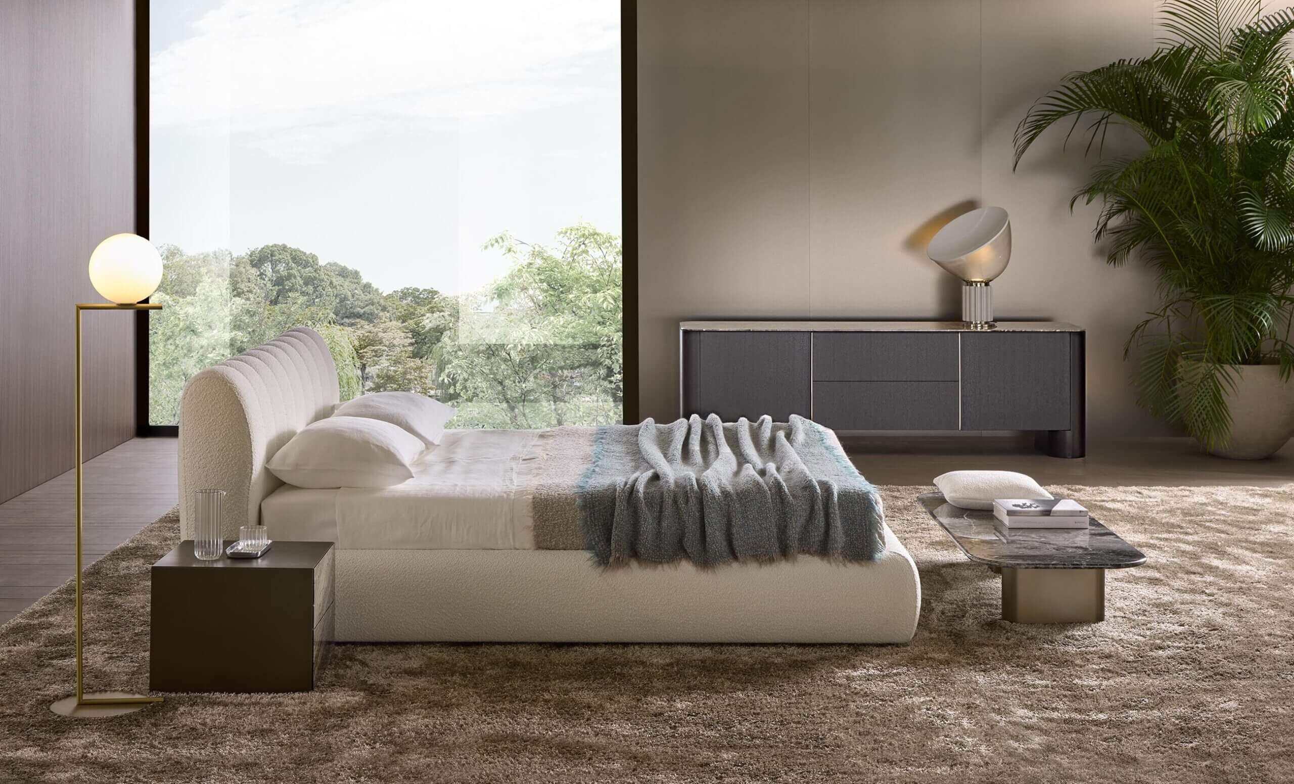 Il letto Milo è un omaggio alla morbidezza delle forme, ispirato alle linee sinuose e avvolgenti dell’omonimo divano. Il suo design organico dona eleganza e armonia alla zona notte, trasformandola in un rifugio di comfort e sofisticata accoglienza.