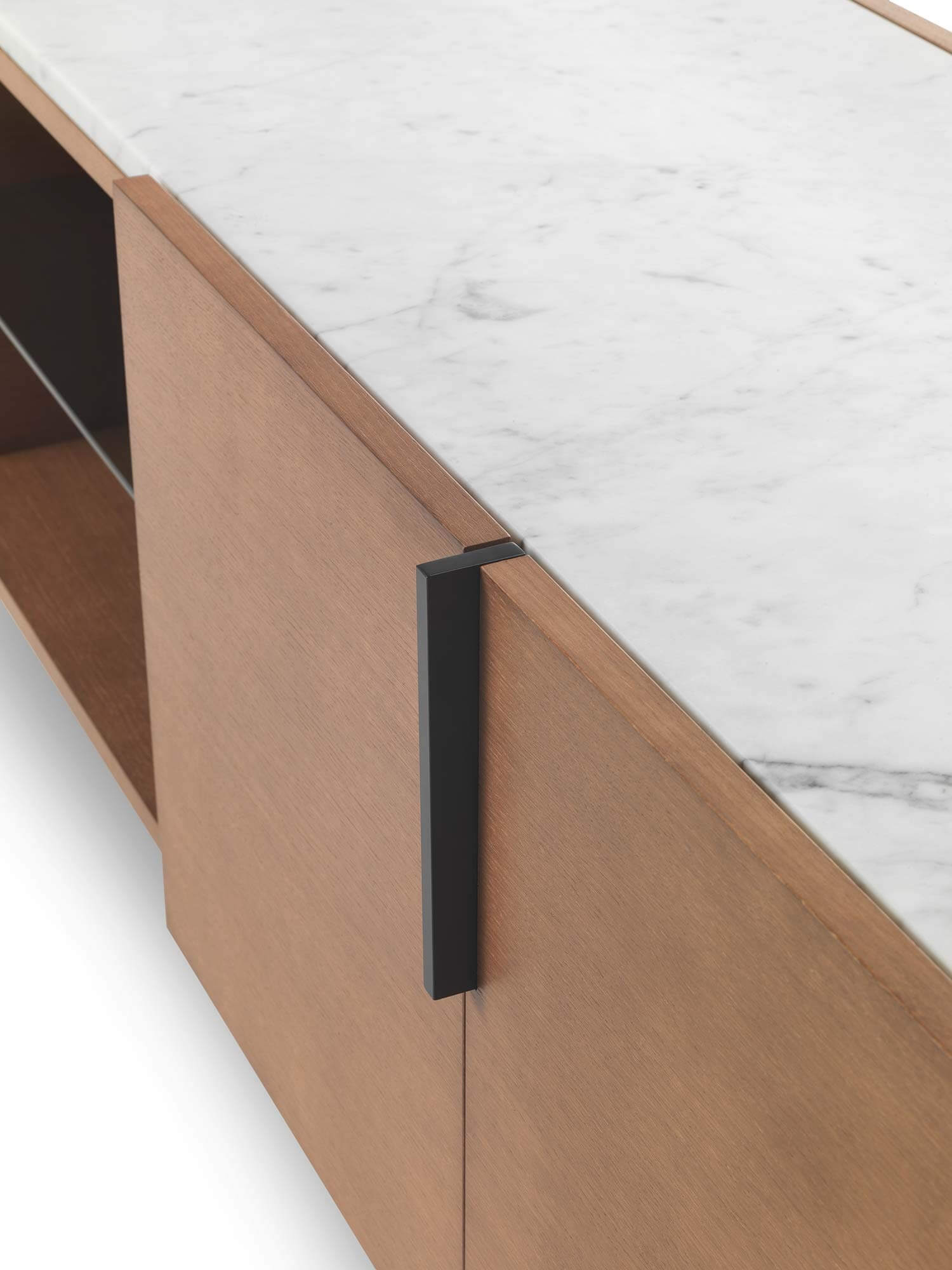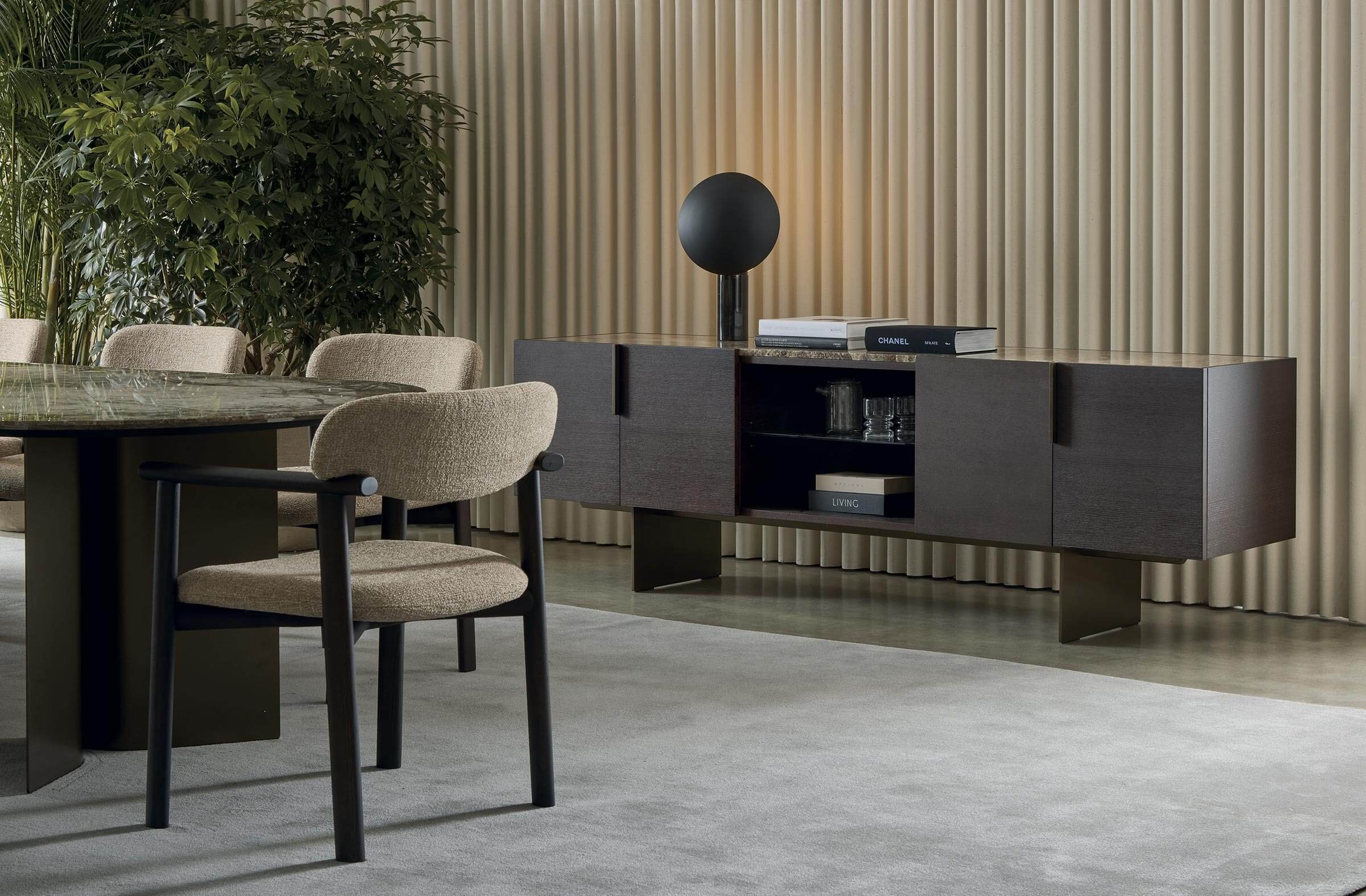La collezione Goerge offre la possibilità di completare l’arredo del proprio living nello stesso stile, con una madia e una credenza. Questi eleganti mobili conferiscono un tocco di raffinatezza a qualsiasi living moderno.