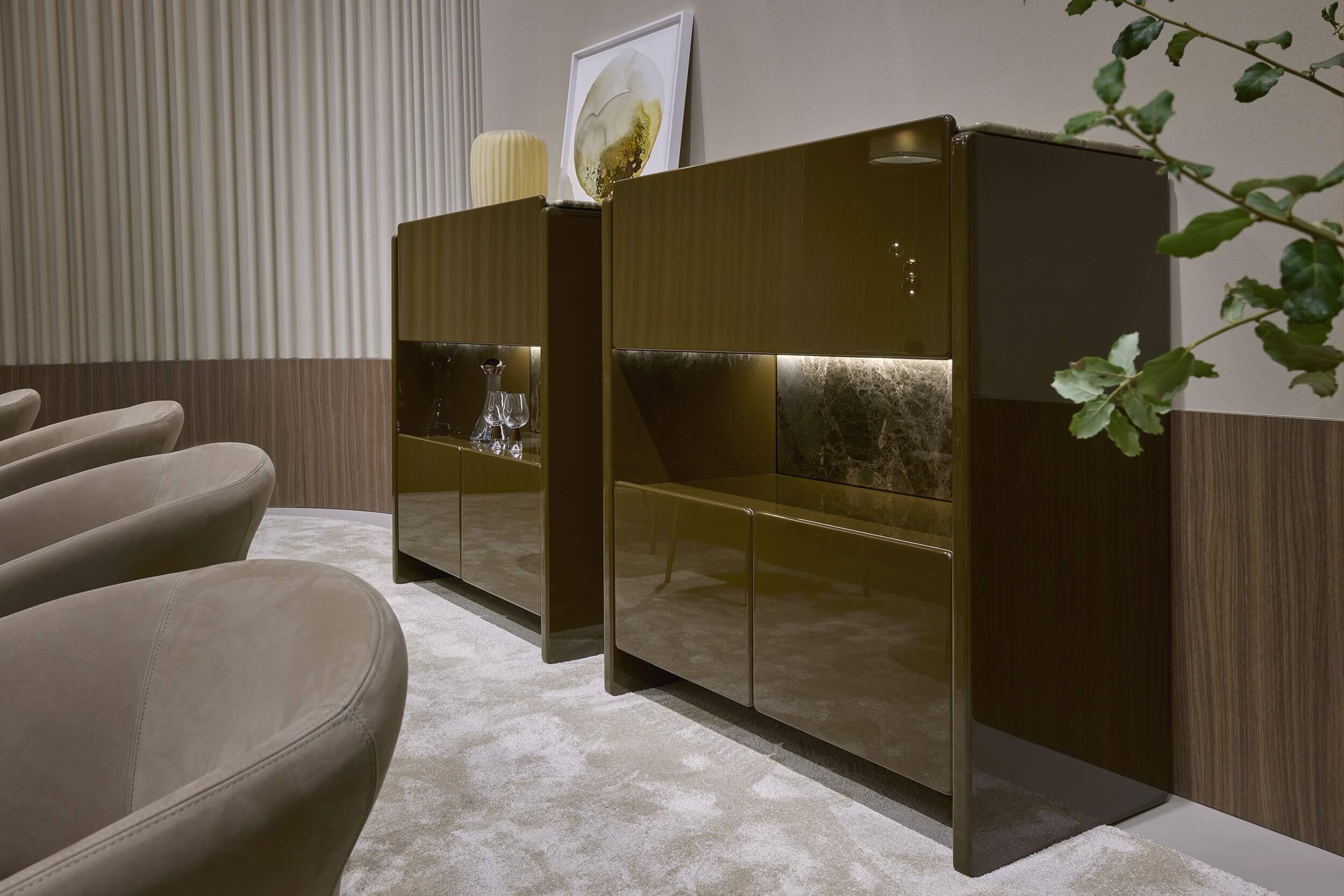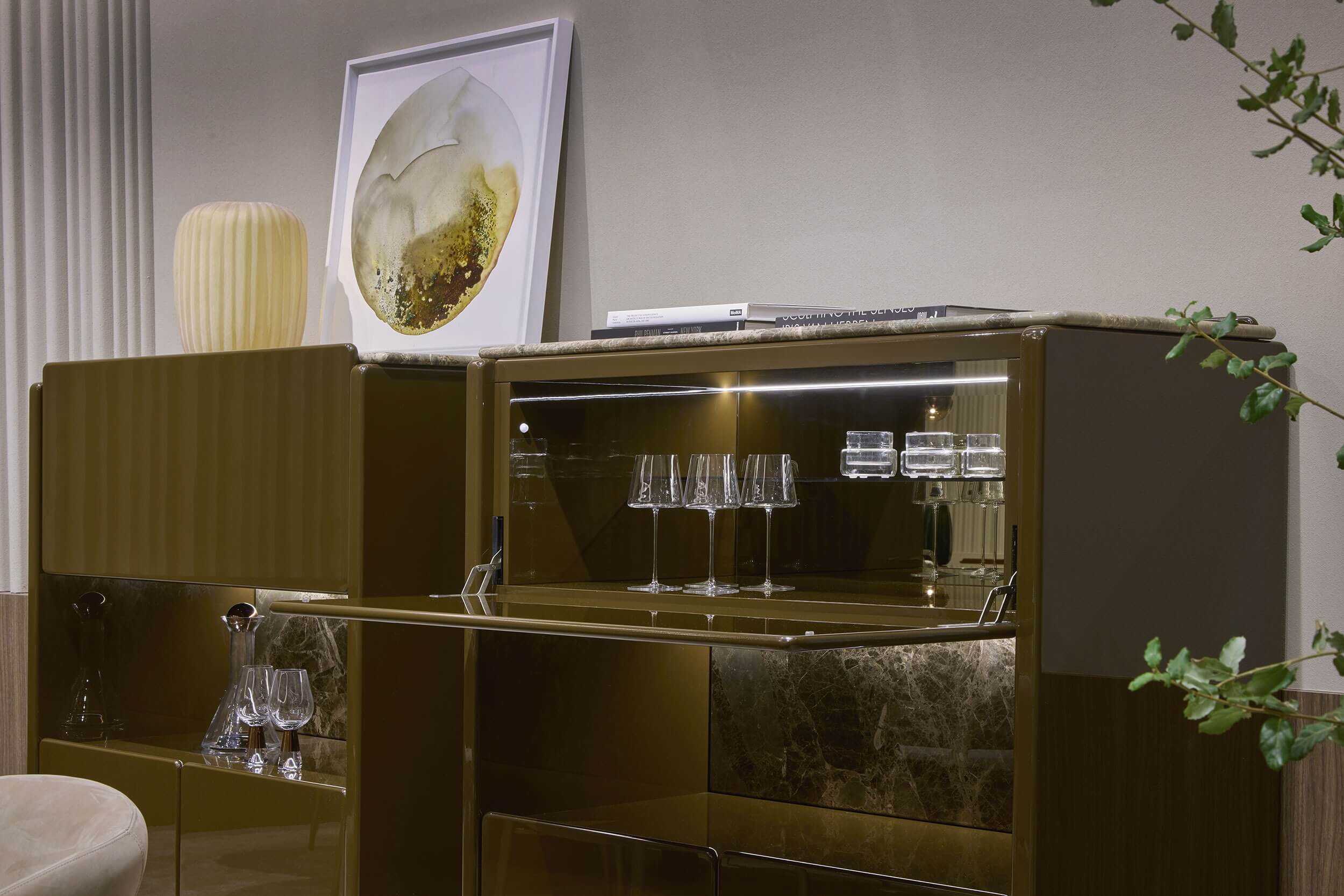 Una caratteristica distintiva è la possibilità di personalizzare le mensole in legno, offrendo oltre 15 diverse tipologie di finiture tra cui scegliere. Questa scelta consente di adattare la libreria al proprio stile e alle proprie preferenze, creando un arredamento unico e personalizzato. Inoltre, gli elementi verticali possono essere laccati lucidi o opachi, oppure verniciati con finiture metalliche delabrè o peltro.
