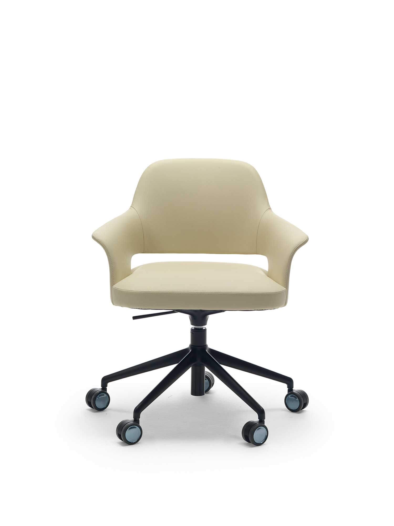 Amy si distingue per la scelta di tre diverse basi, pensate per soddisfare le esigenze sia del mercato residenziale che di quello contract. Optate per la classicità delle quattro gambe in legno per un tocco accogliente, o scegliete la versione rotante in metallo per un living contemporaneo. Per gli ambienti contract, la variante con rotelle offre praticità e stile senza compromessi.