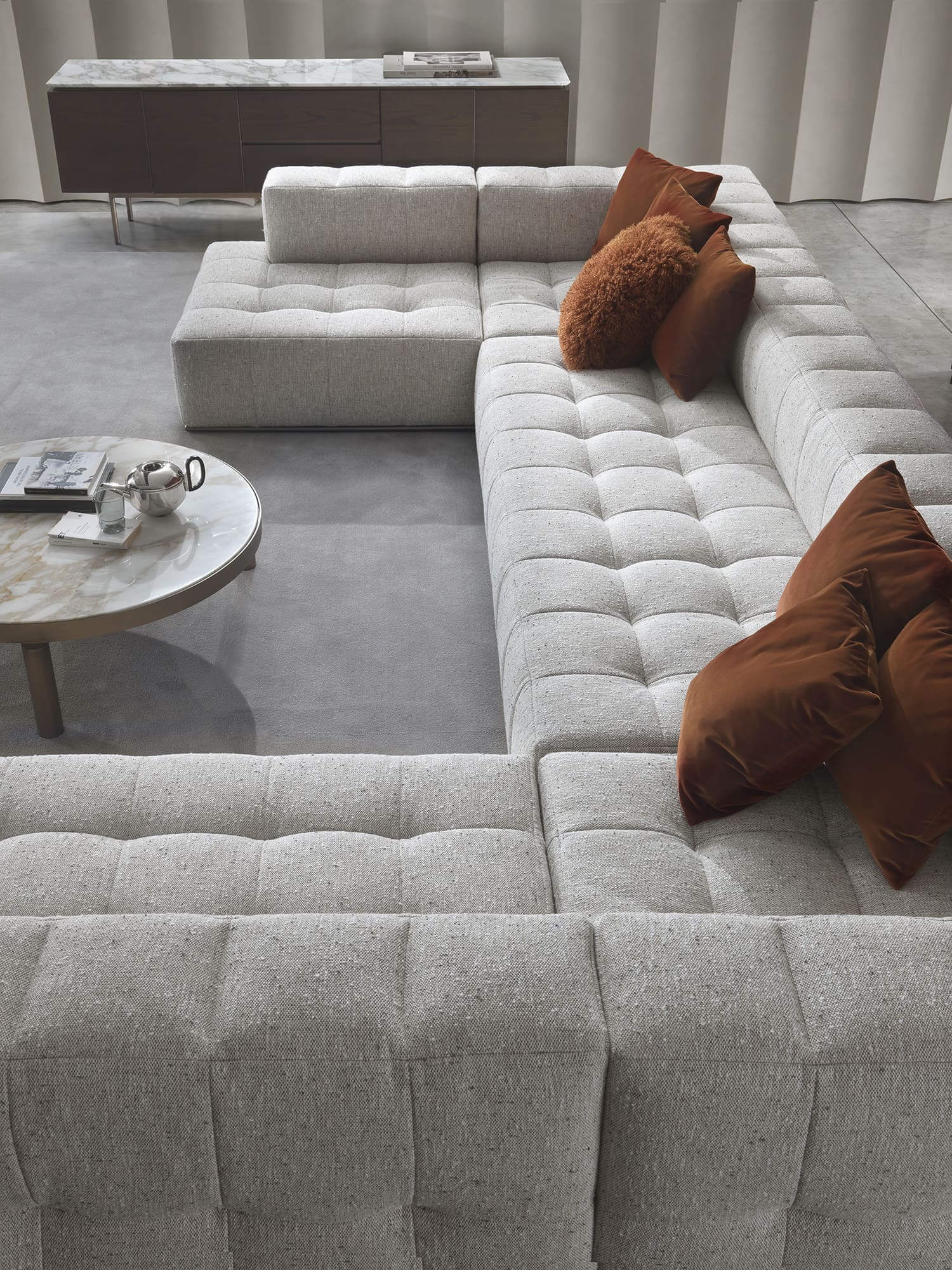 Andy è un divano modulare trapuntato, progettato per adattarsi con eleganza e funzionalità a qualsiasi contesto progettuale. Con i suoi svariati elementi, tra moduli centrali, terminali, dormeuse e pouf, offre infinite possibilità di personalizzazione e configurazione dello spazio.