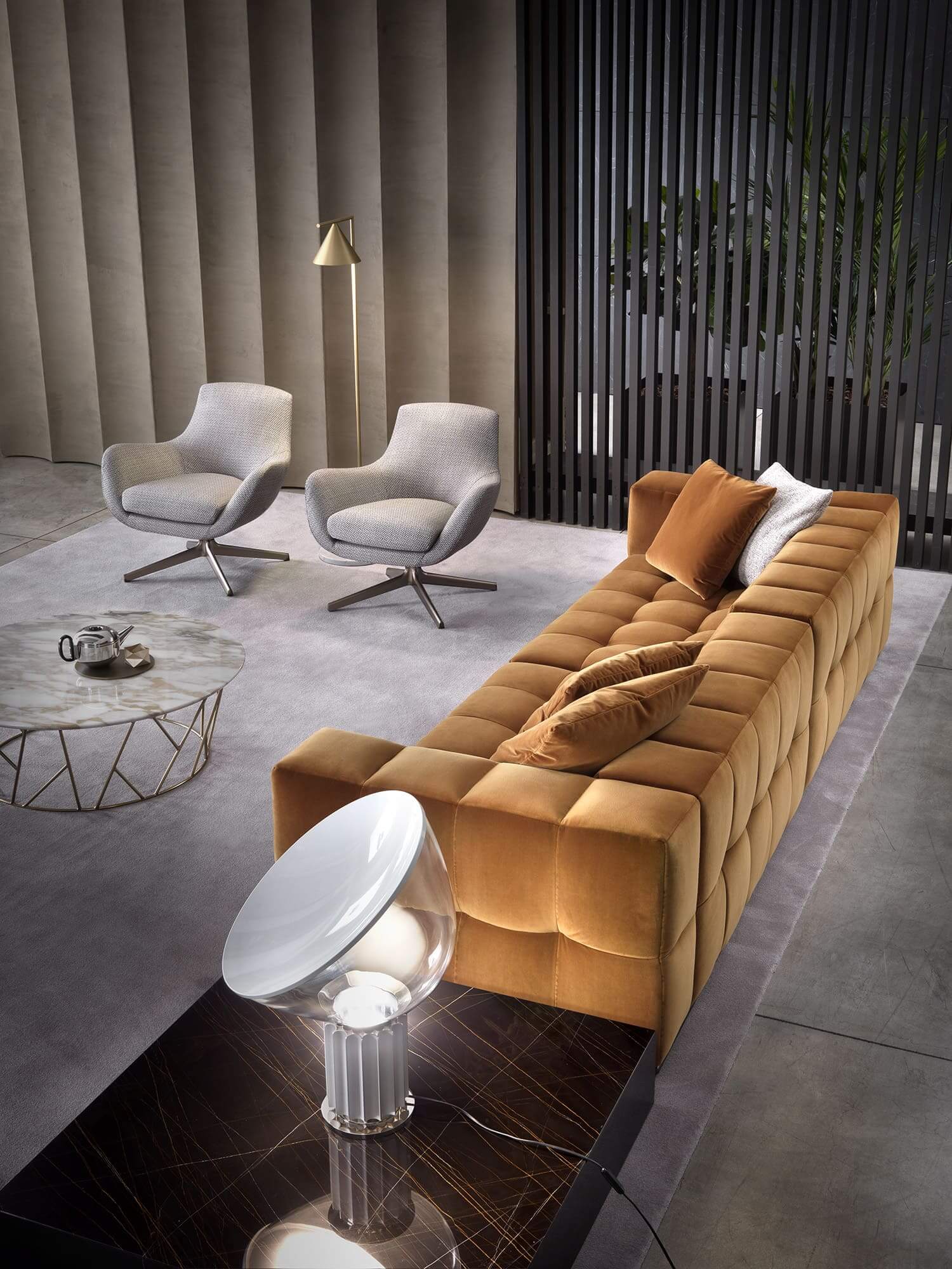 Una vasta gamma di rivestimenti, tra tessuti e pelli di pregio, permette al divano Andy di inserirsi con naturalezza sia in ambienti domestici che in contesti contract, dal living moderno agli spazi dedicati all’ospitalità. La versatilità dei materiali e delle finiture consente di creare abbinamenti armoniosi e personalizzati, in grado di soddisfare le esigenze di ogni architetto e progettista.