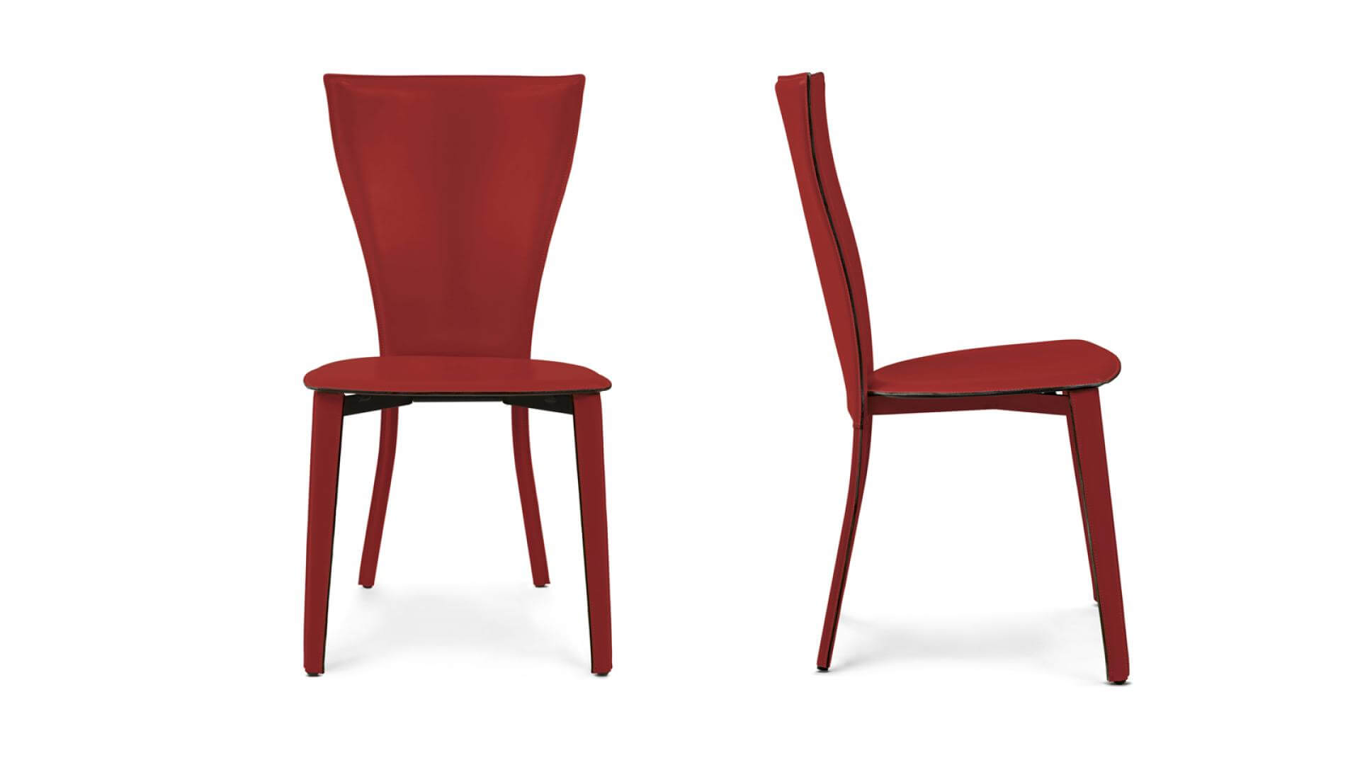 La serie Carlotta si compone di sedia e sgabello Counter con struttura in tubolare di acciaio completamente rivestiti in cuoio. Le linee sinuose ed avvolgenti di sedile e schienale mantengono questo modello sempre attuale.
