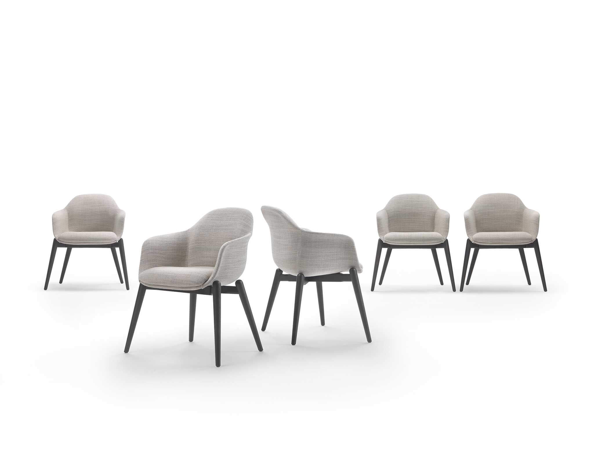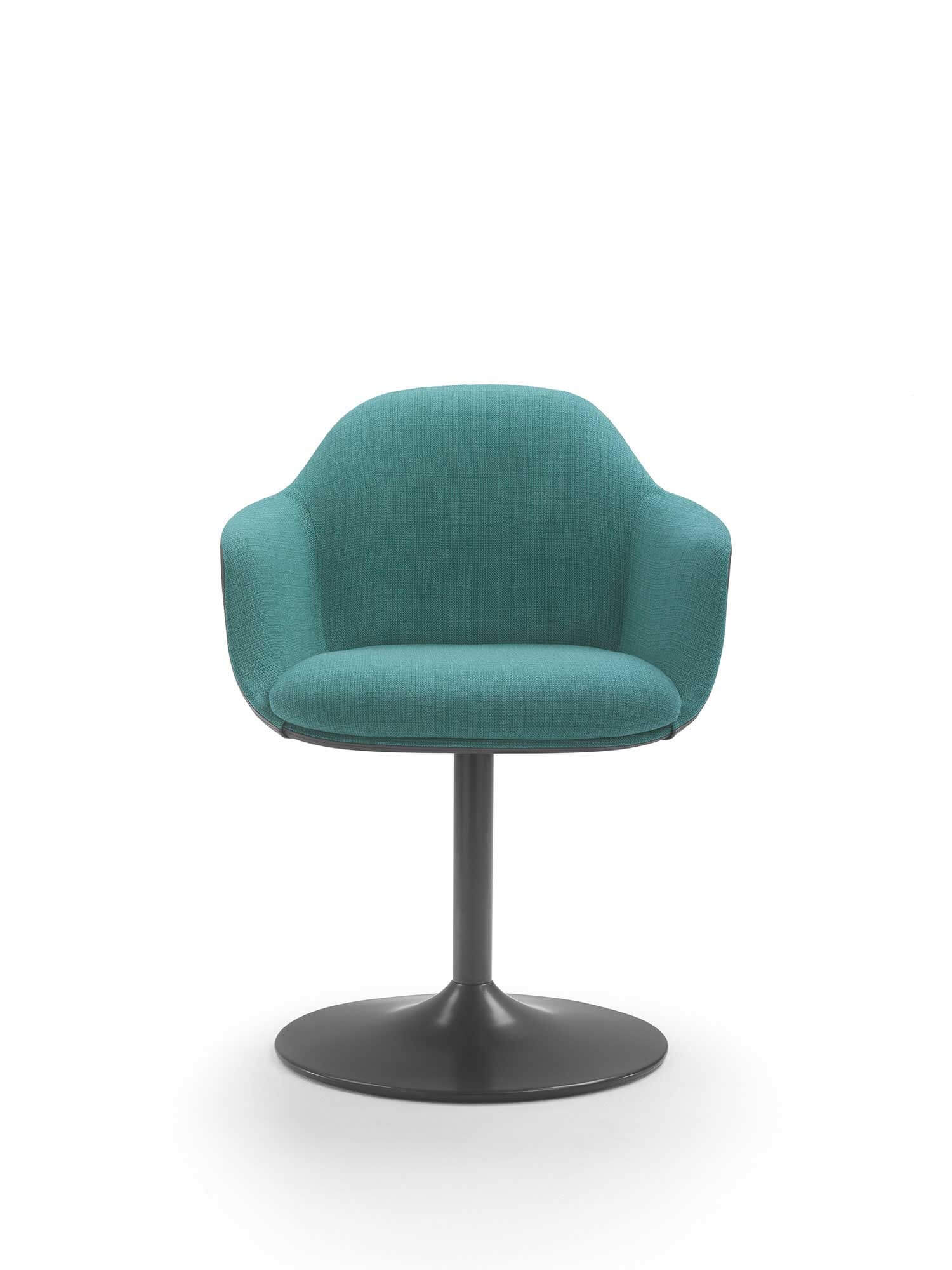 Pensata per rispondere alle esigenze di architetti e interior designer, si distingue per la varietà dei suoi basamenti, che le permettono di adattarsi con disinvoltura a contesti diversi. La versione con quattro gambe, disponibile in metallo o legno, coniuga solidità e leggerezza, rendendola perfetta per ambienti residenziali dal carattere ricercato. Per gli ambienti contract, è disponibile con colonna centrale, proposta con base tonda o a quattro razze, perfetta per uffici, ristoranti e hotel che necessitano di funzionalità senza rinunciare all’eleganza.