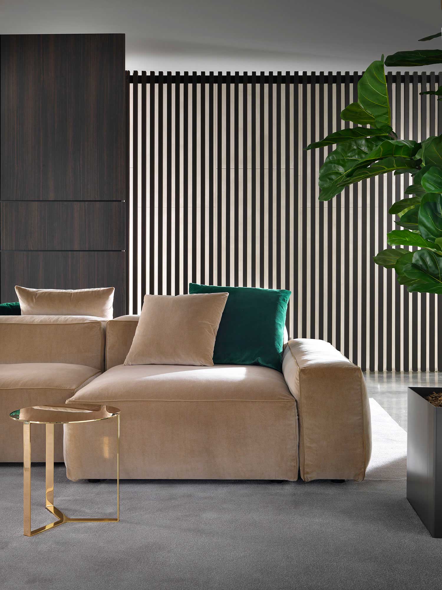 Gary è un divano componibile molto confortevole e versatile che offre la possibilità di combinare diverse forme grazie alla varietà di altezze e dimensioni dei moduli. Il suo design moderno e contemporaneo lo rende adatto sia per ambienti residenziali che per ambienti contract.