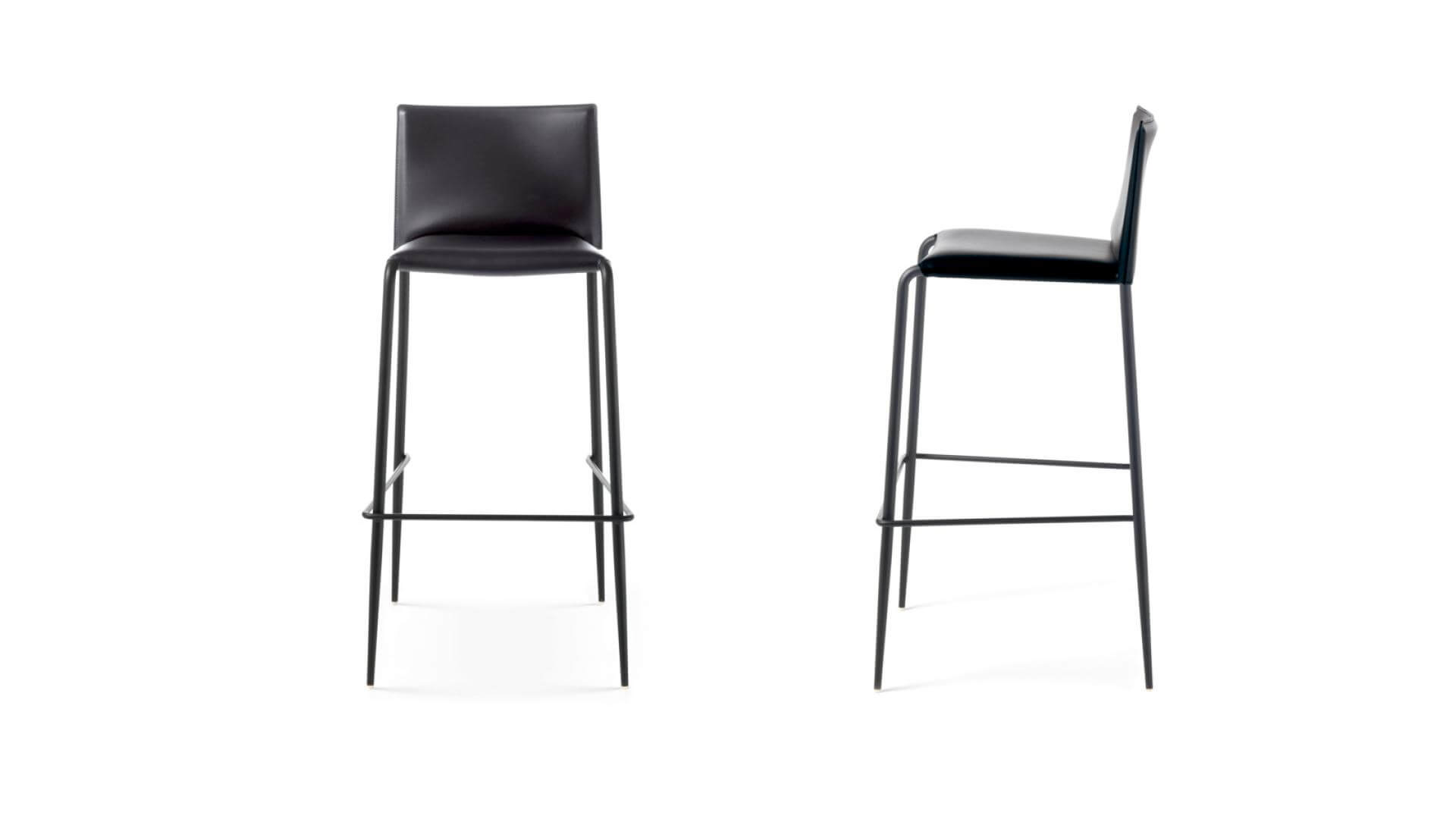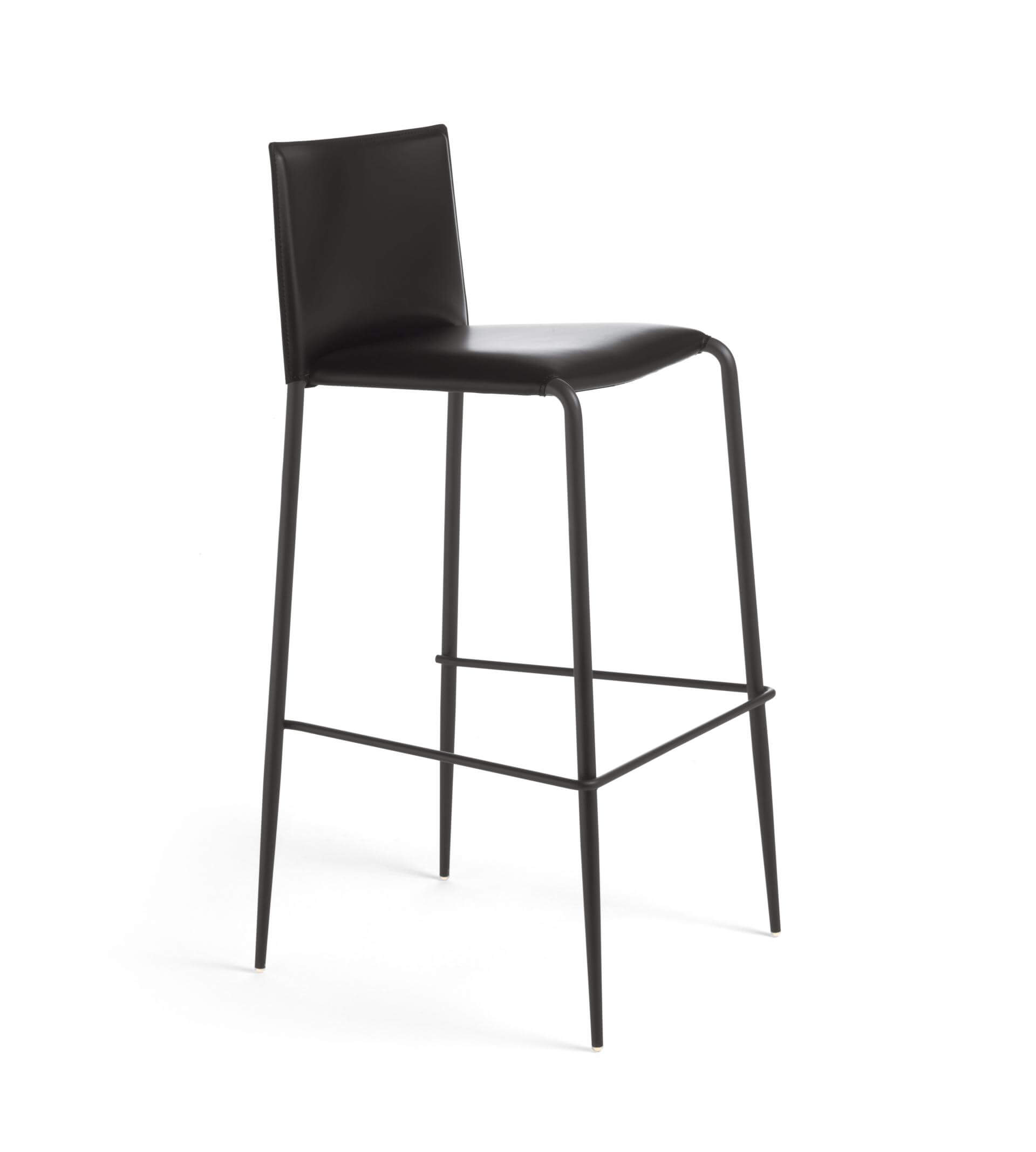 Struttura in tubolare di ferro, diam. 22 mm conificato. Fondo in lamiera rivestito in tessuto tecnico col. nero. Prodotto impilabile fino a un massimo di 4 pezzi (versione standard); fino a un massimo di 10 pezzi (versione contract).