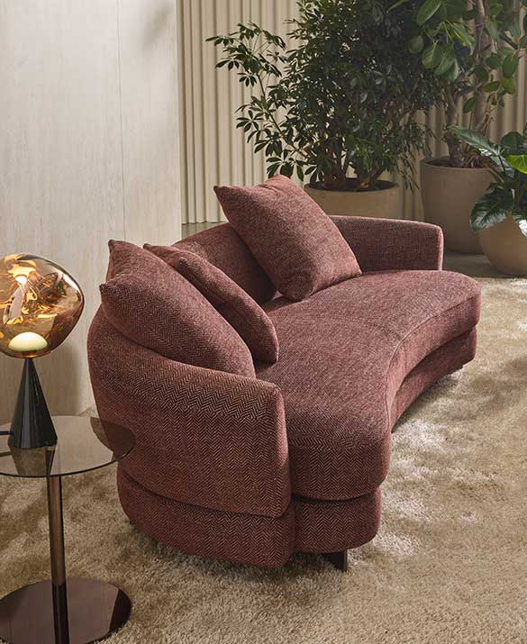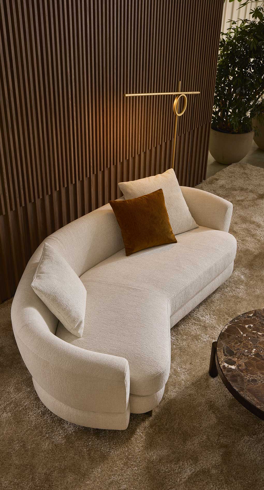 I divani Jeff sono caratterizzati da un design sinuoso, avvolgente e dalle linee morbide, ispirate al fascino retrò. Questo stile conferisce loro un aspetto accogliente e familiare, perfetto per creare un ambiente caldo e confortevole. A catalogo offriamo diverse forme: tonda, con un leggero angolo e lineare per adattarsi a diversi spazi e disposizioni.