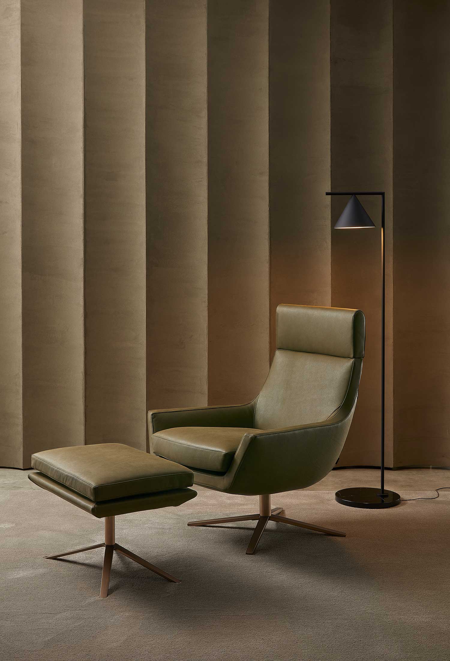 È disponibile in the diverse versioni: schienale basso, alto o wingback. La vasta scelta di tessuti, pelli e finte pelli consente di adattarli a diversi progetti e ambienti.