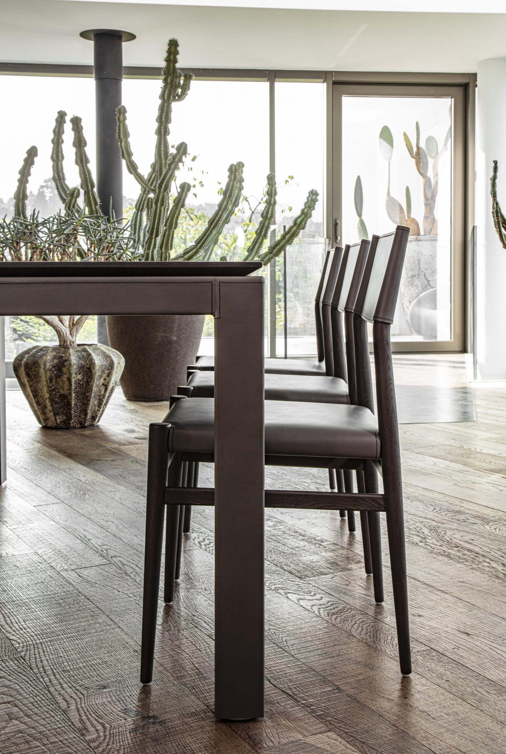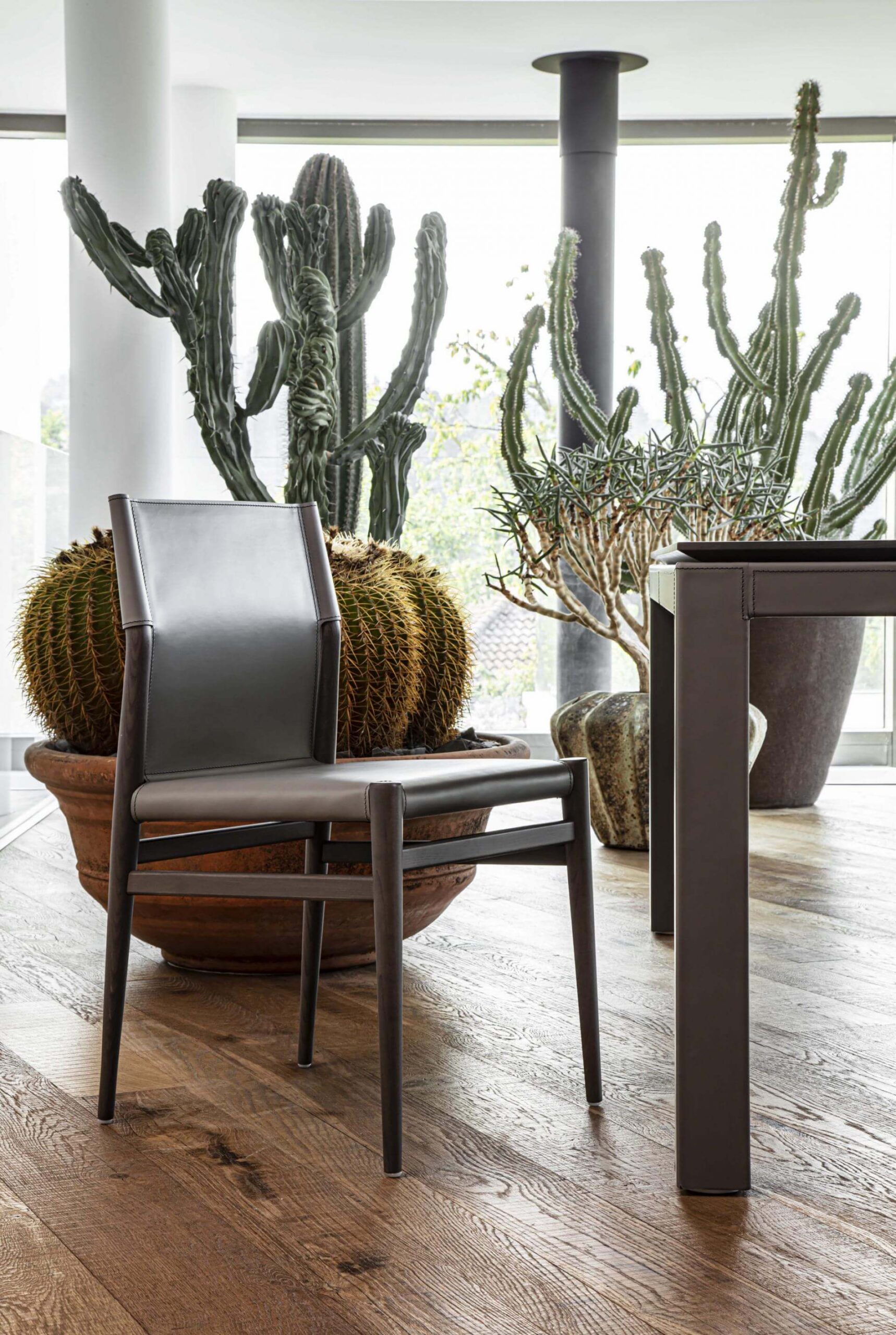 Collezione di sedie, poltrone e sgabelli con struttura in legno nelle essenze FR (frassino naturale), FS (frassino sbiancato) o FG (frassino grigio), e rivestimento in cuoio CPF (cuoio pieno fiore) o CTT (cuoio contract). Schienale disponibile nella versione piena o “light”. Geometrie lineari dal taglio semplice e materiali corposi come il legno e il cuoio, richiamano tutta la naturalezza del design scandinavo.