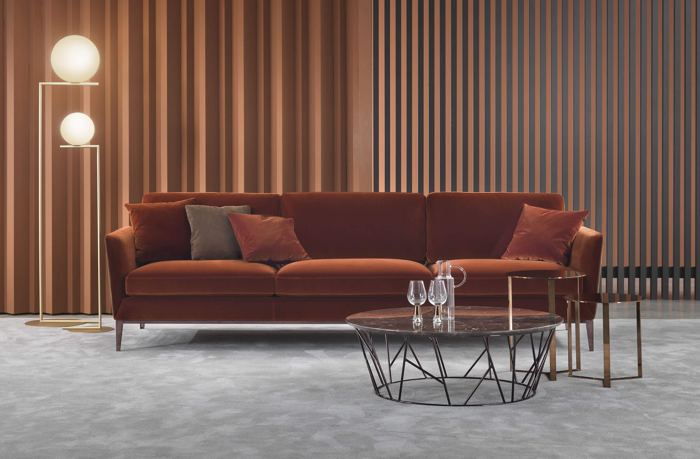 La famiglia di poltroncine, divani e divani componibili Ritz è rinomata per il suo design elegante e senza tempo. Le sue linee morbide e raffinate conferiscono uno straordinario senso di leggerezza allo schienale e ai braccioli, accentuato ulteriormente dalla fine base in metallo. Questa caratteristica li rende adatti non solo agli ambienti living, ma anche per utilizzi contract, come lobby hotel o uffici.