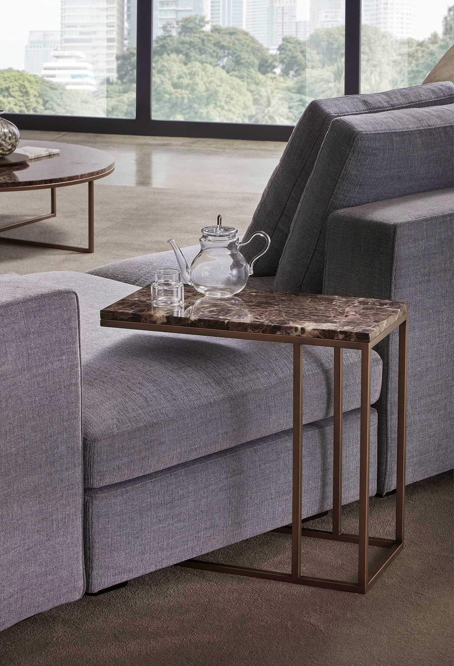 Frame offre anche una vasta scelta di finiture per soddisfare i gusti personali e le esigenze di progettazione. Puoi trovare tavolini con piani realizzati in marmo, legno, vetro e metallo. Questa varietà di materiali consente di abbinare i tavolini Frame a diversi stili di arredamento e di creare combinazioni interessanti con gli altri elementi presenti nell’ambiente.