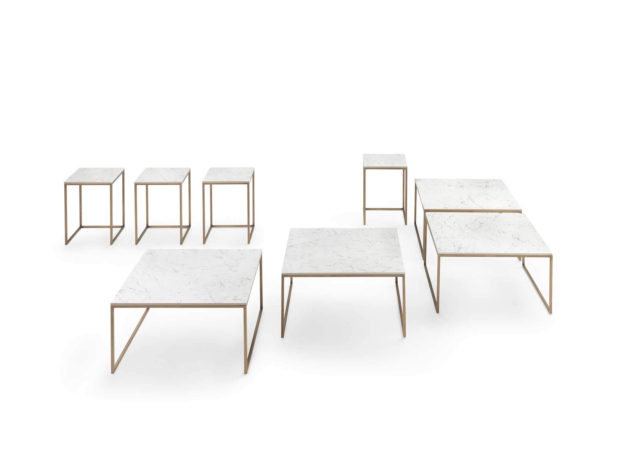 La famiglia di tavolini Frame è caratterizzata da un design semplice ed elegante, che li rende adatti a una varietà di ambienti, sia residenziali che contract. Questi tavolini sono disponibili in diverse forme, tra cui tonda, quadrata e rettangolare, per adattarsi alle esigenze e al layout di ogni spazio.