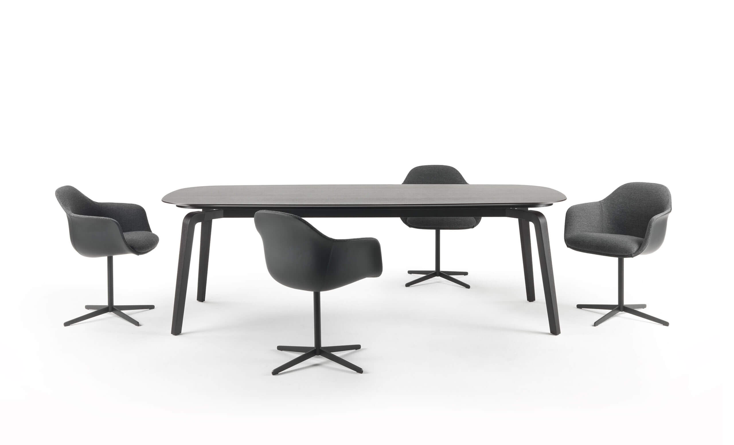 Ciò che rende versatile la famiglia di tavoli Mike è la possibilità di realizzare tavoli su misura. Le basi del tavolo possono essere adattate e personalizzate in base alla forma e alle dimensioni del piano.